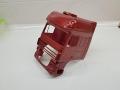 Szokás szerint az alváz volt az első az építés során, itt csak az alváz első részét használtam fel, a közepétől teljesen egészében egy 3D nyomtatott verzió került rá. Az első tengelyt szintén lecseréltem egy kormányozható verzióra. Az alvázat kábeleztem, valamint a jobb oldalra egy műgyanta üzemanyagtank került fel. Bal oldalra készítettem egy Adblue tartályt, mert a széria végében már Euro-5-ös motor volt. Előre egy széles felni-gumi kombináció került, csakúgy, mint a B tengelyre, hátul pedig egy húzómintás gumit tettem fel a gyári helyett. Mint már írtam, a fülkebelső is egy butított verzió, így azt is jobban kezelésbe vettem. Több helyre bőrborítást imitáló anyag került, ami később egy barna színt kapott, ezzel megoldottam, hogy ne a csupasz kabint láthassam készen. Az ágy külön borítást kapott, de az üléseket is átalakítottam, valamint kaptak biztonsági övet is. Kicsit „berendeztem” a fülke belsőt, hogy életszerűbb legyen. A festésnél a fülkének egy metál bordót szántam, az alváznak egy sötétebb metálkéket, és a fülkén ezüst-metállal kombináltam a bordót. A fülkére került egy 3D-s állóklíma, valamint a tetőre készítettem egy lámpatartót, amire szúrólámpákat tettem. Sok egyéb kiegészítő, lámpa, légkürt került még rá, csakúgy, mint egyedi matrica, ezzel egy holland stílusú kamiont próbáltam megjeleníteni.