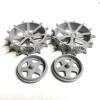 Már csak a hátsó kerekek szerelése maradt, ami meglepően egyszerű volt, pontos illesztéssel. A kerék két félből van, illetve a küllős oldal kívül és belül.