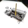 Az építésben nincs bántóan sok opcionális elem. A sofőr részénél van egy szerszámos dobozka, valamint a kipufogó kialakításnál lehet választani alsó elvezetést, ami a gép hasa alatt fut, valamint a klasszikus függőleges, égbe pöfögőt. Természetesen ez a látványosabb, így erre törekedtem. Miután találtam megfelelő méretű rézcsövet a kellékesben, nem is volt kérdés ennek a cseréje sem. Bár a leömlő utáni csonkot így át kellett alakítani, hogy a függőleges csövet tartsa valami. A csonkba így tettem egy furatot, abba ragasztottam egy rézdrót darabot, ami pedig passzolt az újdonsült kipufogócsőbe.