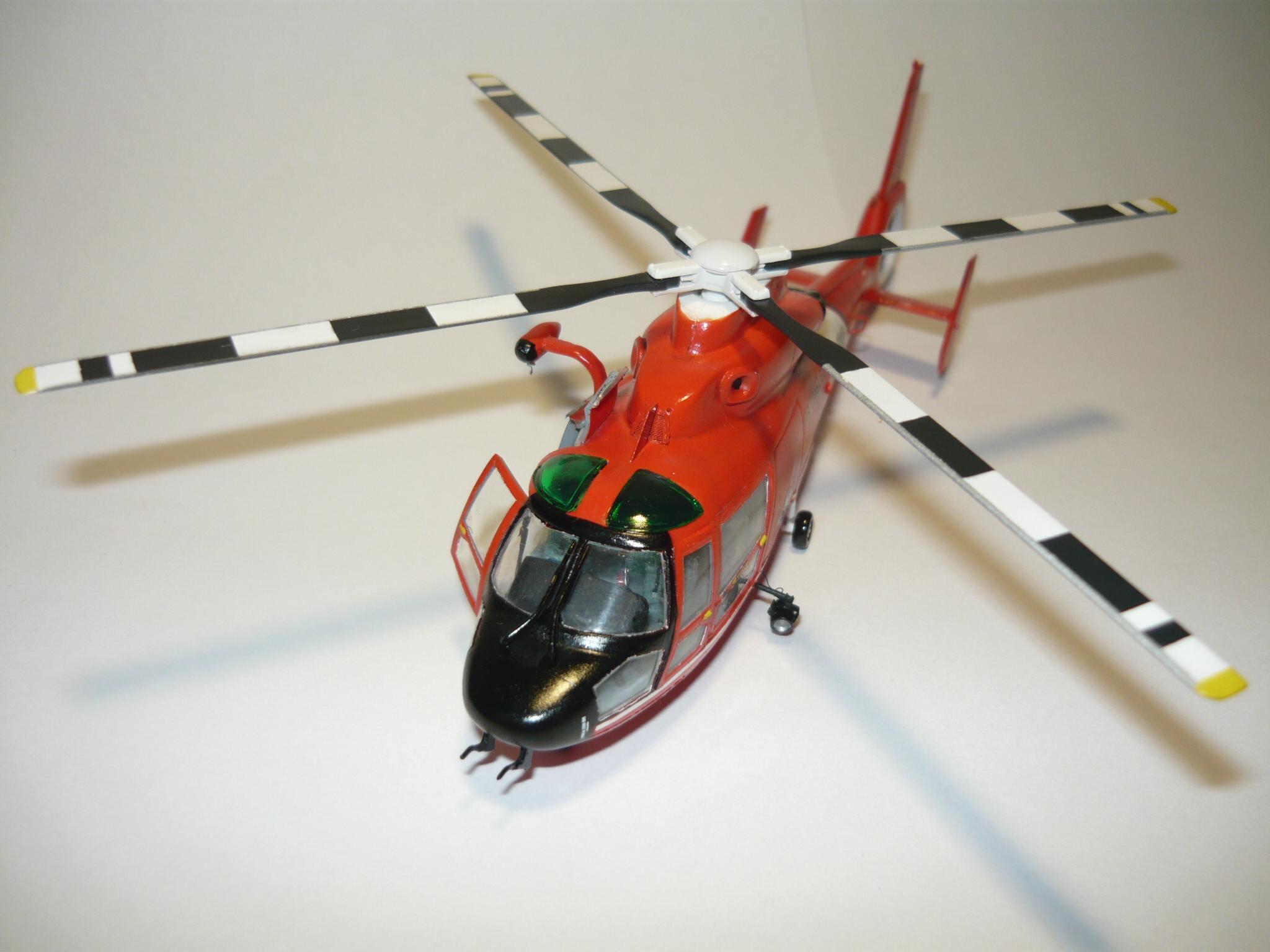 Az első elképzelésem a francia tesztgépre esett, mert a másik, azaz a USCG festéshez erősen hiányos volt a készlet. "Normális" matrica meg nem volt hozzá. Jól is nézett volna ki a fehér gép narancssárga sávokkal, de egy idő után be kellett lássam, hogy a belsejéről nem tudok megbízható képeket szerezni, így ejtettem a dolgot, maradt a parti őrség gépe, és a kutatás megfelelő képek után.