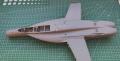 A makettet mindenképp felhajtott szányvégekkel, kitérített orrsegédszárnyakkal és ívelőlapokkal szerettem volna megjeleníteni, a 18-asoknak nagyon jól áll a sok kitérített hatalmas felület. A szárnymechanika felépítése és kivitelezése egyszerű, semmi problémát nem jelentett, és lendületből meg is csináltam mind a négy részét. Nagybölcsen ezután néztem meg pár fotót, és egy-két rövid percen belül rájöttem, hogy felhajtott szárnyvég mellett egyetlen olyan Super Hornet fényképet sem találtam, ahol a külső ívelőlap lehajtott állapotban lenne! Egyet sem! Ez érdekes, mert orrsegédszárny viszont ki van térítve a felhajtott szárnyfélen is. Vissza az asztalhoz, és a még szerencsére nem teljesen megkötött ragasztás óvatos lefejtése következett.