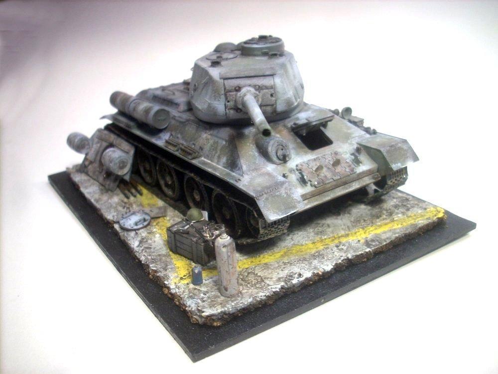 A jelenet egy téli harcokban lepusztult, javítóműhelyben álló T-34-et mutat be. A címe lehetne Szerelők Ebédje is (hol vannak a szerelők? Hát ebédelnek...)