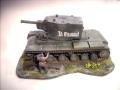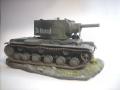 A makett a Trumpeter készlete. Pontos, könnyen összerakható készlet, a jelenet szerint épp lánctalpszakadással küzd (mondhatnánk, lefőtt a KV…)