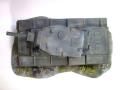 A festésnél próbáltam a páncéltest fémes jellegét is megjeleníteni, burnt iron alapra került többféle vékony ködszerű zöld és rozsdaszín árnyalat.