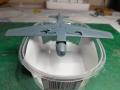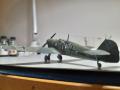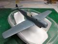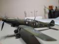 Külön adja a törzs orrába a fegyverpanelt, ami megint csak sok szárazpróbát igényel. Sajnos a fegyver nincs a készletben és a helyét is ki kell alakítani. Különben csak egy fal zárja le a végét. A szárnyhoz adott fegyver túl vaskos, így az sem használható. A szárnyon, mivel én egy "B"-t készítettem, sok mindent el kellett tüntetni. Fegyverpanelek, kivetők, valamint a kialakított lyukak a belépőélen. (Amik valamilyen oknál fogva kb. fél centire el voltak csúszva egymástól, alul-felül. A jobb szárny alatti hűtőt az összeállítási rajz egyáltalán nem jelöli. Szerencsére a helye és az alkatrész benne van a készletben. A vezérsíkok szintén nem nagyon akartak szorosan illeszkedni, itt is tömíteni kellett. A kabintető hátsó kerete túl szögletesre sikerült, egyáltalán nem illeszkedik a törzskerethez. Csiszolás, polírozás. Amúgy nagyjából jól illeszkedik, bár nekem elől-hátul korrigálnom kellett.
