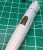 Következő lépésben el kellett készítenem az Argus motor hozzávetőleg utánzatát, mert az orr elején lévő hűtőlevegő beömlőn keresztül kicsit belátni a motortérbe. Egy kisebb műanyag tömb, némi feldarabolt öntőkeret segítségével ez gyorsan meg is volt. A fekete alapszín és ezüst szárazecsetelés után bekerült a helyére, majd feltettem az orr elejét is a törzsre. Itt kicsit mélyítettem a beömlő két oldalán, illetve az orr tetején lévő nyílásokat is.