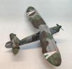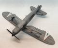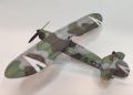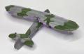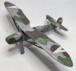 Lakkozás után jöhettek tehát a házi készítésű matricák, szám szerint négy darab. Kicsit sajnos darabosak lettek, mert a nyomtató ilyen kis méretben nem tudott ennél jobbat produkálni. Halványan fújtam egy kis korom- és lőpor nyomot is a megfelelő helyekre, aztán matt lakkal fejeztem be a gépet. A száradás alatt megfestettem a kerekeket- fekete tárcsák, szürkésfekete gumi -, és a légcsavart. Ez utóbbit kicsit koptattam is ezüst ceruzával. A nyitott beszálló ajtó felragasztásával pedig be is fejeztem ezt az alig tenyérnyi kis makettet.