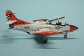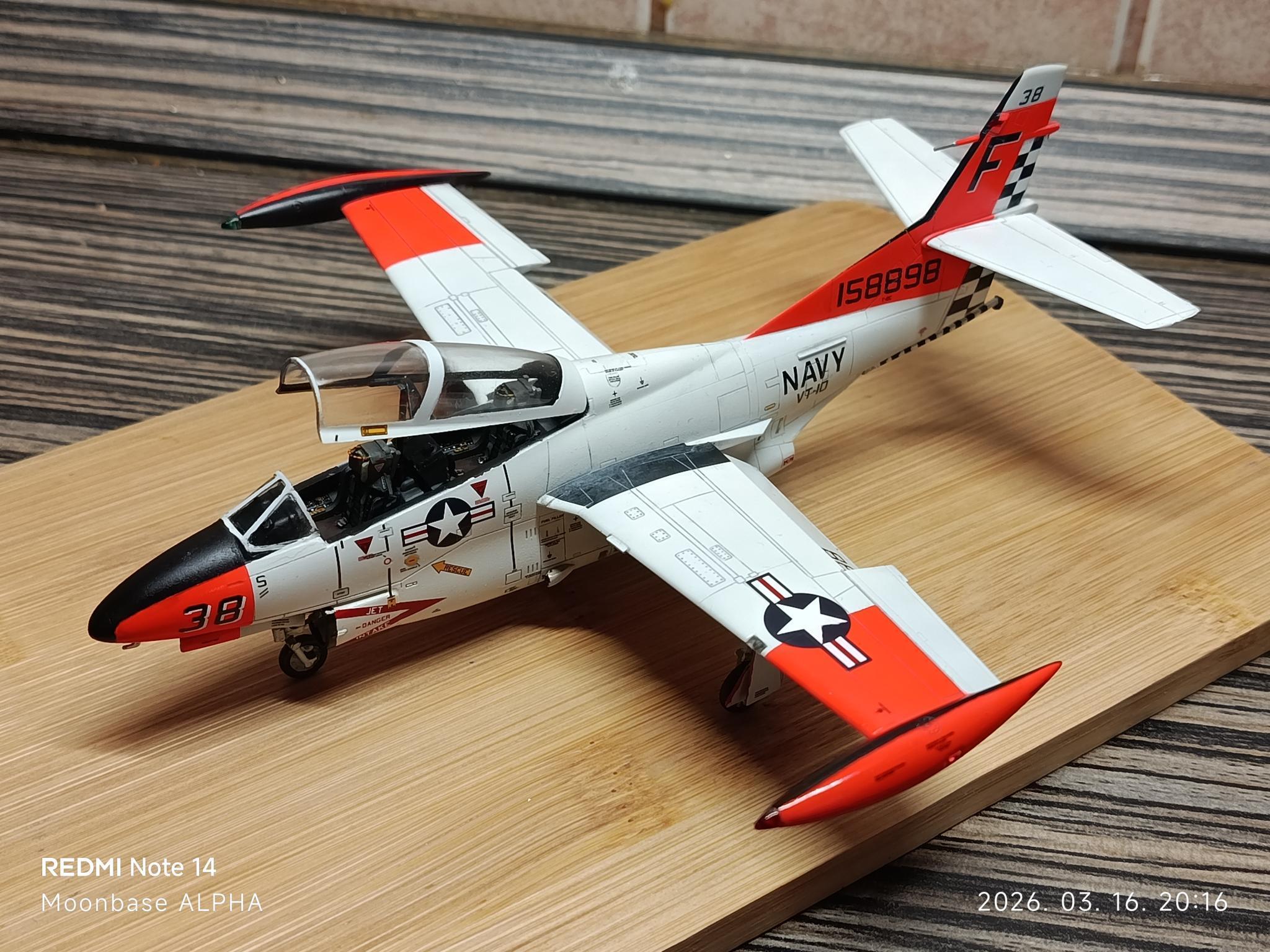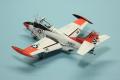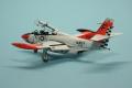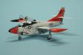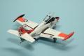 A kabin matricás, eléggé részletes, én csak a hevedereket pótoltam vékony alulemezből. Az építés nagyjából eseménytelen volt, nincsenek rejtett csapdák. Amikor a törzs és a szárnyak egyben voltak, ideiglenesen lezártam a kabint, lemaszkoltam a deklit, és az egész repcsit lealapoztam matt fehérrel, majd fényes fehérrel (Mr.Color, C316) lefújtam az egészet. Ezután következett a „piros” felületek maszkolása és a Fluorescent Red szín (Mr.Color, C171). A festési útmutató C173-at ír elő (Fluorescent Orange), de én azt túlságosan narancssárgának ítéltem, így a C171-nél maradtam.