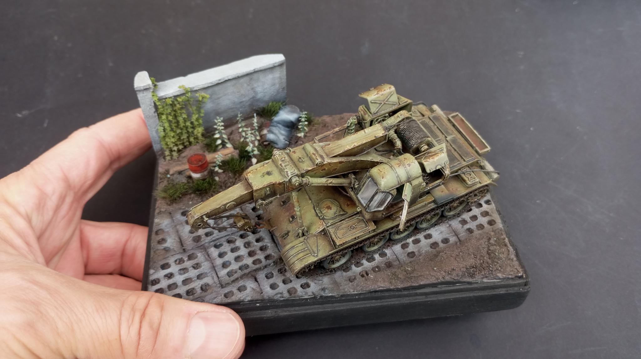 A festést a szokásos "orosz zöld" akril festékekkel végeztem. A sötétbarna olajos bemosás után olajfestékekkel fakítottam és koszoltam a járművet.