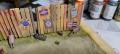 Mivel egy műhely udvara a cél, elengedhetetlen egy általános műhelyrumli. Netről vadászott autóalkatrészeket 3D-nyomtatóval készítettem, amiket a szintén nyomtatott raklapokra raktam rá. V8-as blokk, hengerfejek, kipufogók, leömlők. Ami régebbi alkatrész, azokba ragasztottam némi mohának látszó szöszt. A frissebben bontott alkatrészek, mint például a blokk és a hengerfej pedig olajos, felületet kaptak (Vallejo 73.814). A blokkba tettem pár tőcsavart is, így talán élethűbb a szerelés utáni állapot. A platóra ragasztottam még egy nyitott szerszámosládát pár kéziszerszámmal, hogy tényleg a munka látszatát éreztesse.