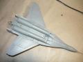 Úgy döntöttem aztán, hogy nem akarom túlbonyolítani a fegyverzetet, de nem is akartam csupaszon hagyni. A legtöbb makettem egész jól meg van pakolva fegyverrel, így most csavartam a dolgon, gyakorló rakétákat raktam fel, illetve a középső póttartályt. Tehát két inert R-27, két inert R-60 és egy PTB-1500.