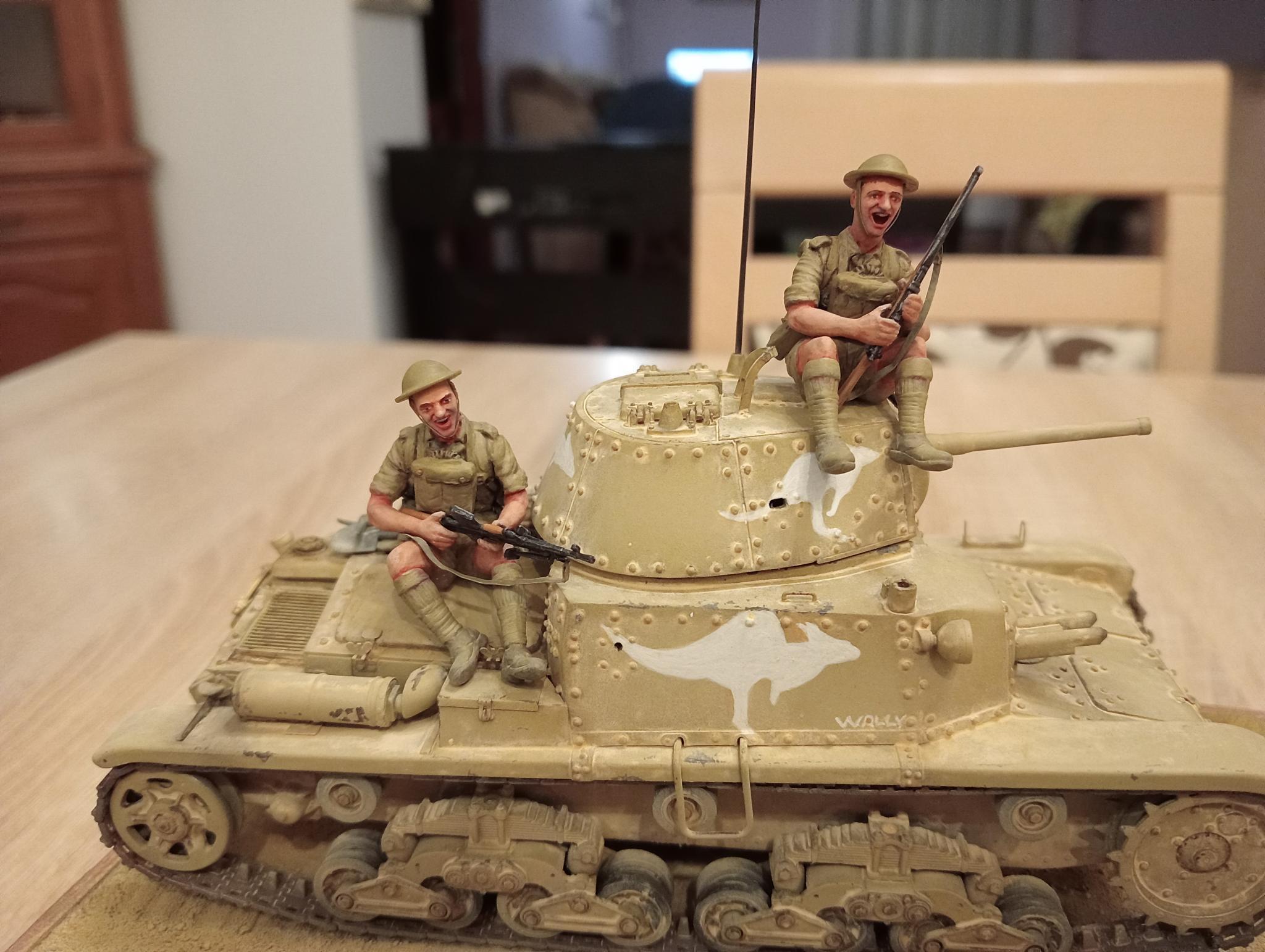 Az utóbbi évek témaválasztásaiban egyre inkább az motivál, hogy némileg eltérjek a makettépítés fősodrától (Tigris, Párduc, megint Tigris, stb.), illetve a saját kedvenceimtől (például Sherman). Így jutott eszembe egyszer, hogy korábban találtam már néhány képet ausztrál zsákmány olasz harckocsikról, köztük egy M13/40-esről, amit új gazdái a Wally névre kereszteltek. Ez még önmagában nem lett volna érdekes, mert az olasz harckocsik sosem vonzottak, viszont a rájuk festett, fehéren virító kenguruk már annál inkább.