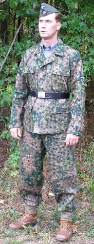 ez pedig a háború elején viselet álcaruházat, M38 SS-VT platanenmuster álcablúz / Tarnbluse / és sisakhuzat